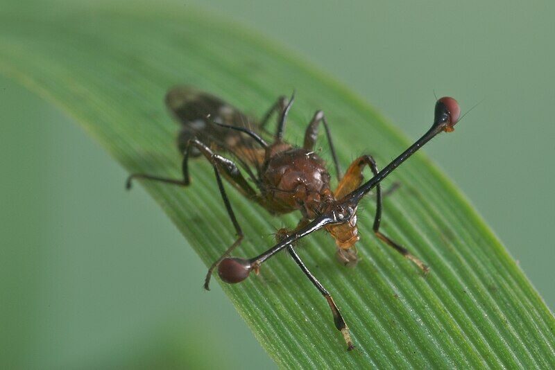 【シュモクバエという奇妙な目を持つハエに関して生存に不利であるのにこのような形質が集団内において定着した理由として性選択が理由であるとして】