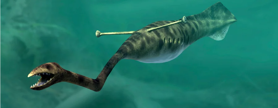 私には、信じがたい!なんとも奇妙な生物であるが、化石からの想像図である。