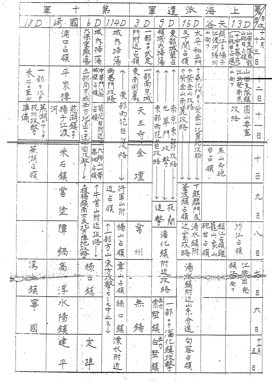 下は自分で見つけた一次資料である。残念ながら、12月13日で終わっている。やはり、第六師団は無関係であるようだ。南京入城式は、17日に行われた。