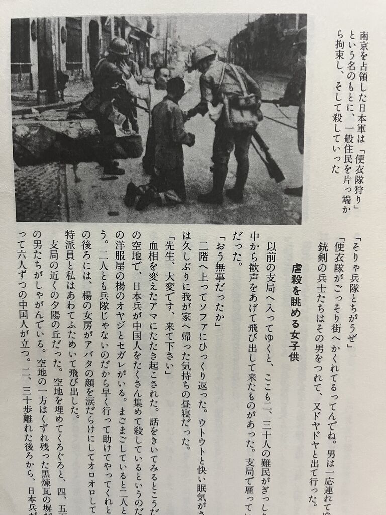 【支局の中国人スタッフから日本兵が中国人男性を殺していると聞いて】中村昭吾特派員と私はあわてふためいて飛び出した。