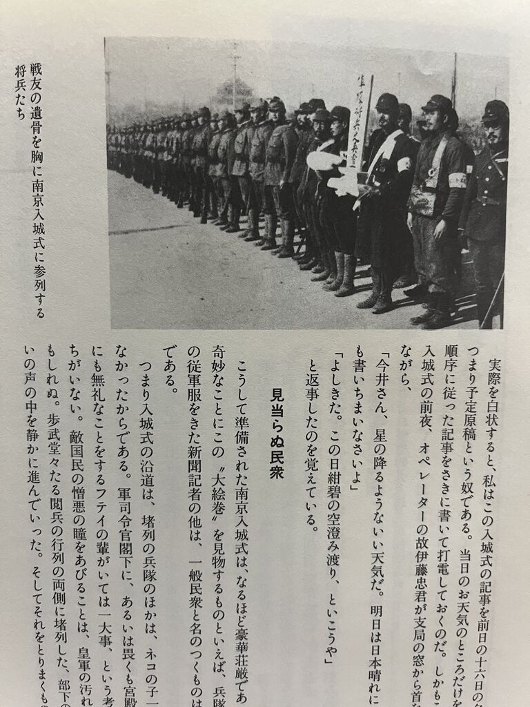 こういう入城式を挙行するために、2、3日前から南京城内に敵の一兵たりとも残存するを許さず、という軍令が入城部隊に厳達されていた。