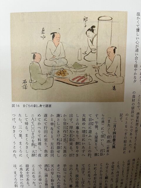 忍藩は関東平野の内陸にある。にもかかわらず、この絵日記には、マグロの刺身等々の海産物が比較的よく出てくる