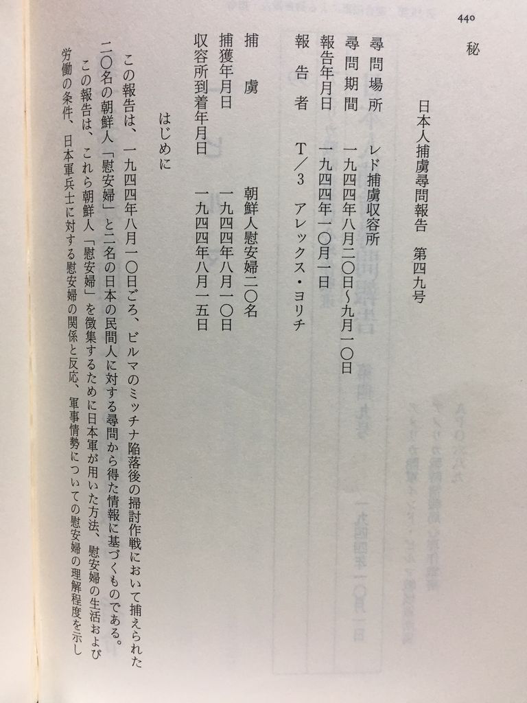 ④この連合軍捕虜尋問記録については、頭のいかれた韓国人連中も当然知っているはずであり、尋問記録からのみみると、慰安婦は朝鮮半島で「買われた」ことを示す資料しかないにもかかわらず、強制連行されたと世界中に嘘を巻き散らかしている。単なる慰安婦の捏造された記憶に基づくものに過ぎない。
